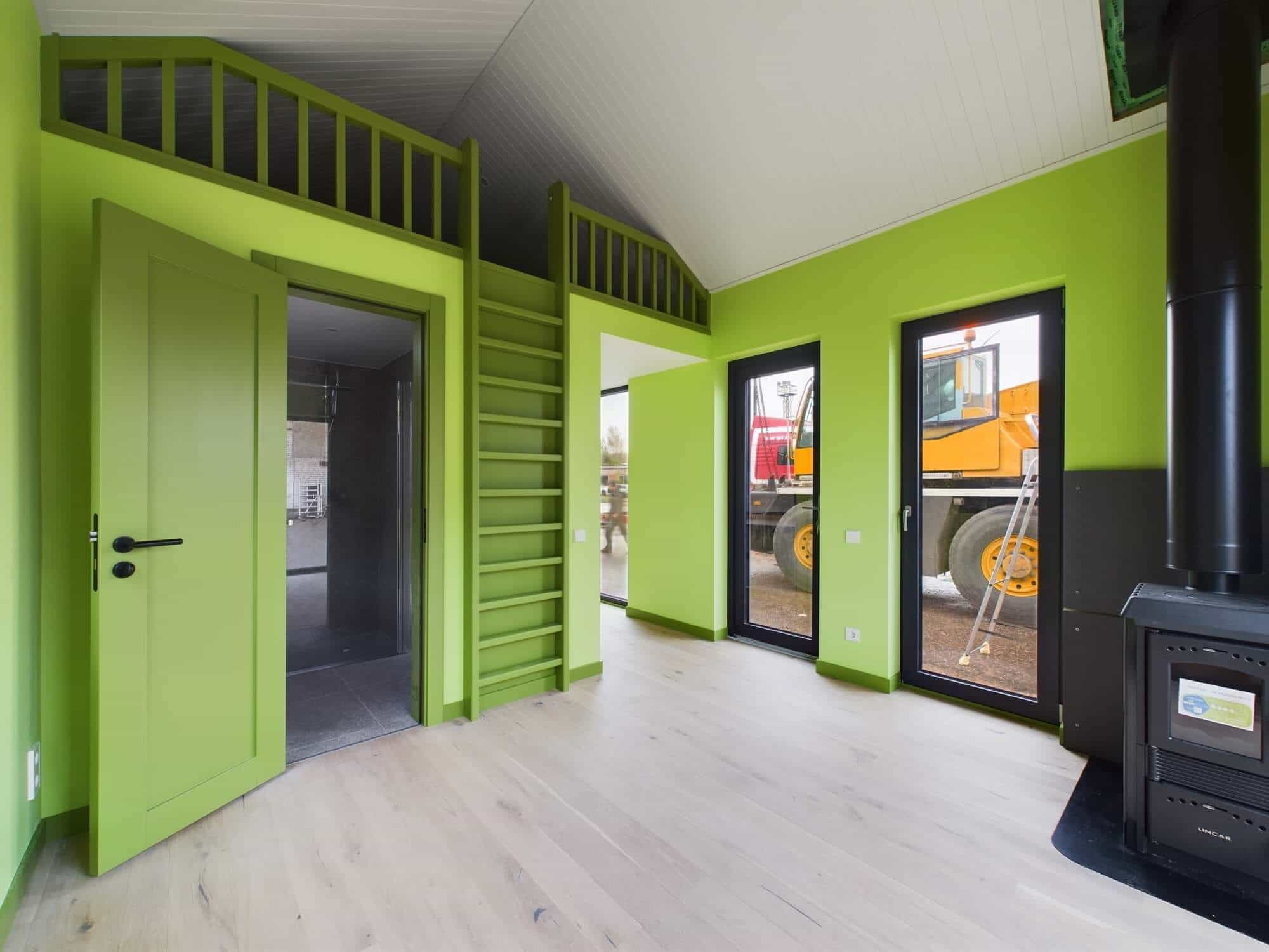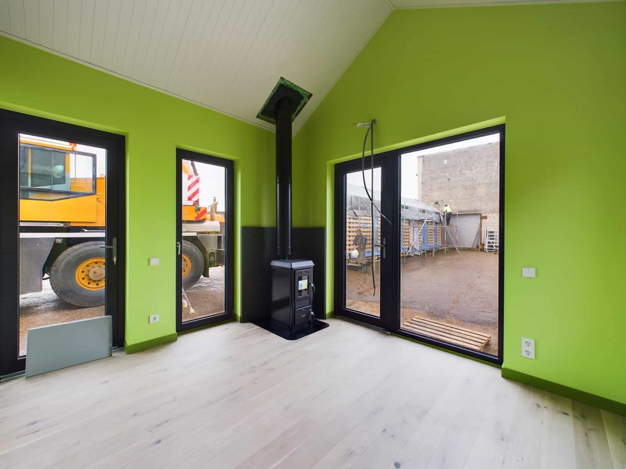 Bygging av trehus reduserer byggetiden betydelig, da huspanelene produseres på fabrikken og monteres på stedet med hjelp av en kran.